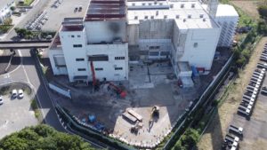 ダイオキシン類除染作業を開始にあたって、建屋の閉塞養生、負圧集塵機設置、クリーンルーム設置等の作業が完了しました。