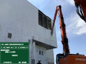 8月から実施しておりました、前室(汚染物質を搬出するための密閉した作業部屋)を設置するための建屋先行解体が完了しました。